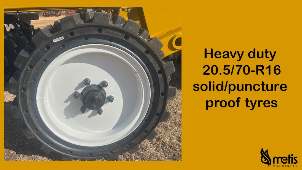 - Heavy duty solid/puncture proof tyres: 20.5/70-R16