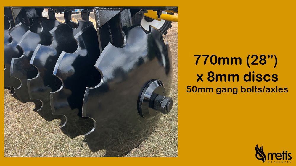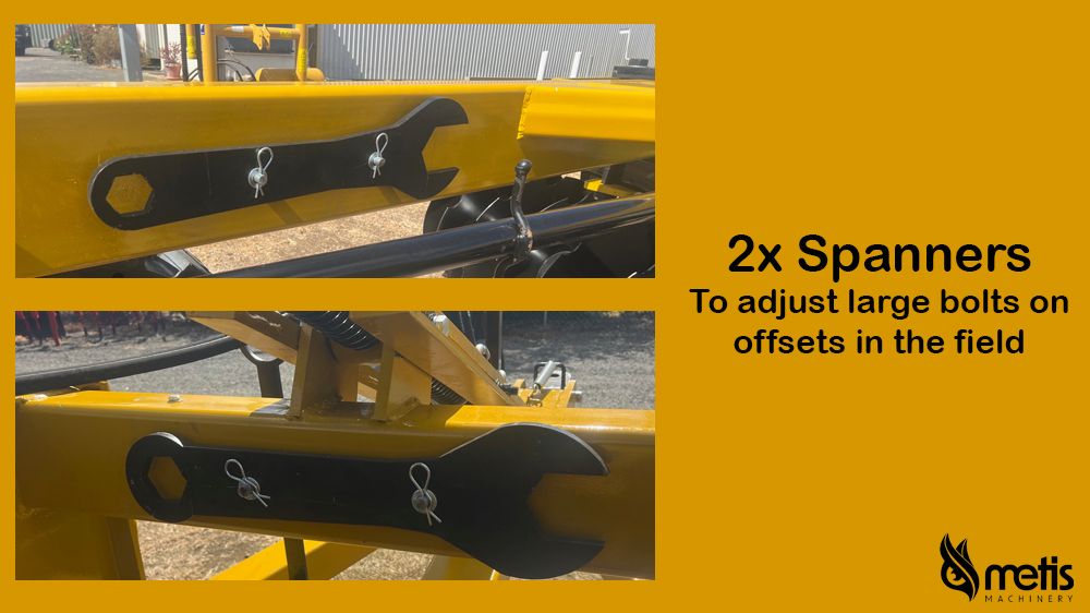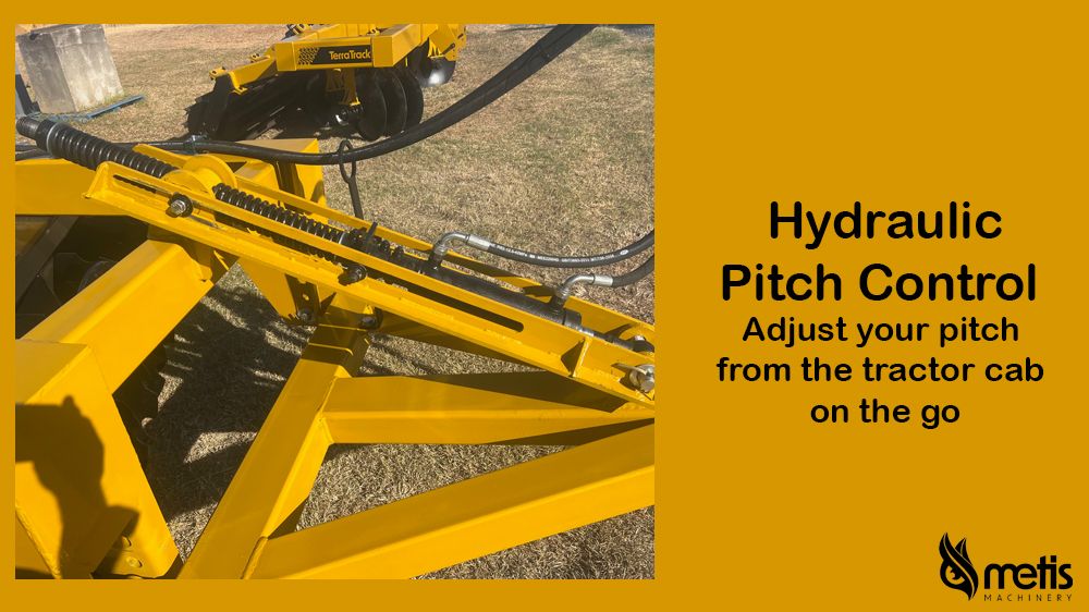 Metis TerraNova offset discs are the leaders in their class. Stronger and heavier to handle a range of farming application. Our TerraNova offsets are also equipped with "Hydra-Just", allowing you to change the angle of the plow hydraulicly to adjust your plowing aggression.