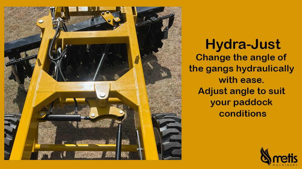 - "Hydra-Just" hydraulic gang angle adjuster with 2 stage gang lock
