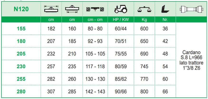 Medium duty rotary hoe suitable for tractors up to 120hp.