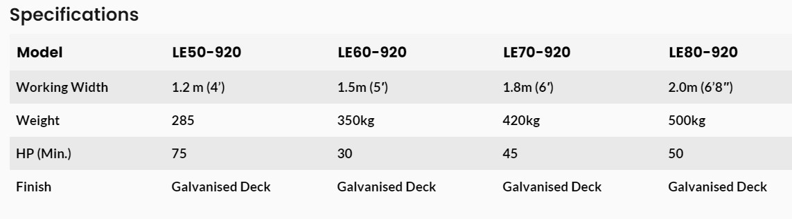 - Standard to suit 30-75 HP tractors