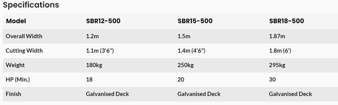 - SABRE range of offsettable rotary slashers
