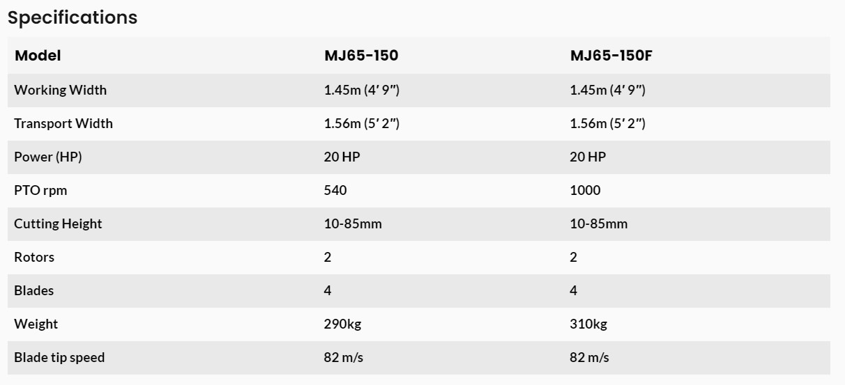 The patented double-chop blade system requires less HP than a comparable width flail mower.